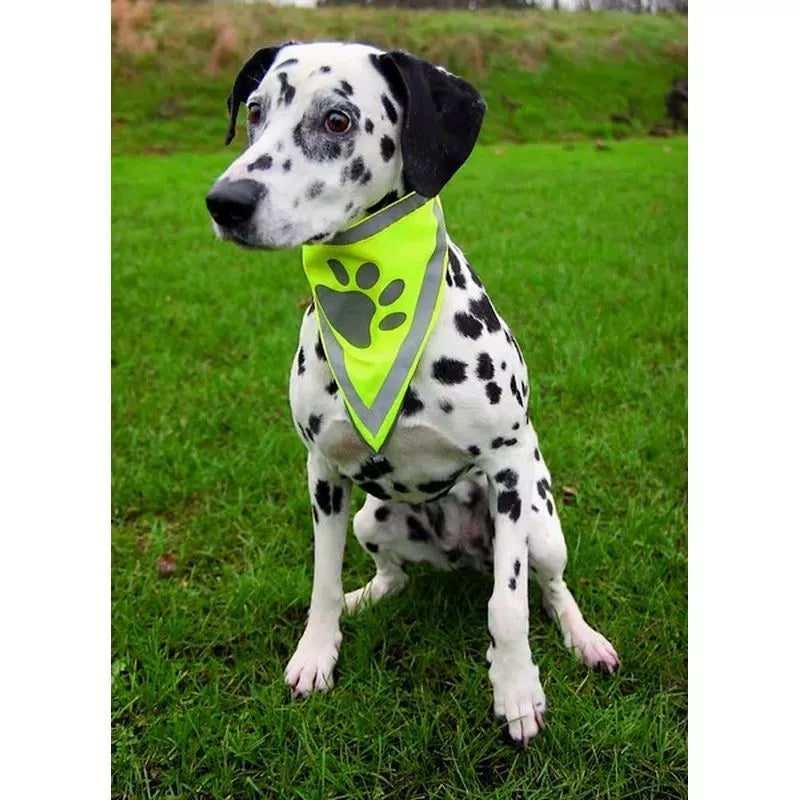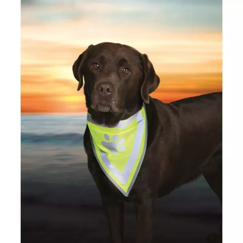 Trixie poliészter anyagú, tépőzáras, fényvisszaverő csíkokkal és mancs mintával díszített biztonsági kendő kutyáknak. 30 C°- on mosható.