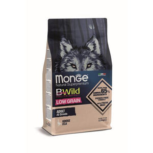 MONGE BWild Low Grain Adult 2.5kg Teljes Értékű Táp Felnőtt Kutyáknak Libahússal Csökkentett Gabonatartalommal